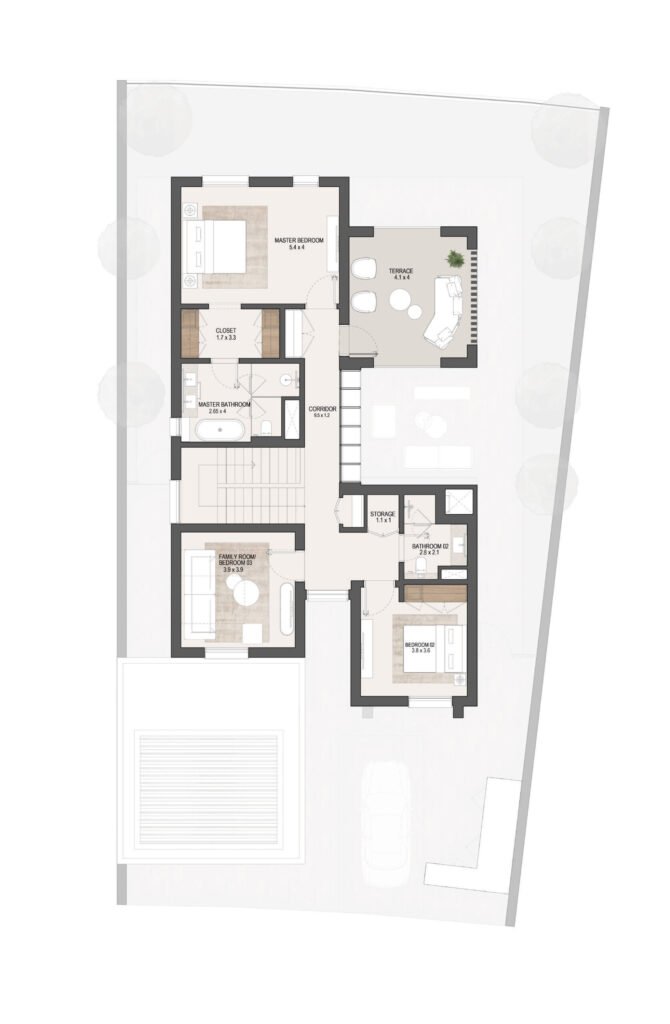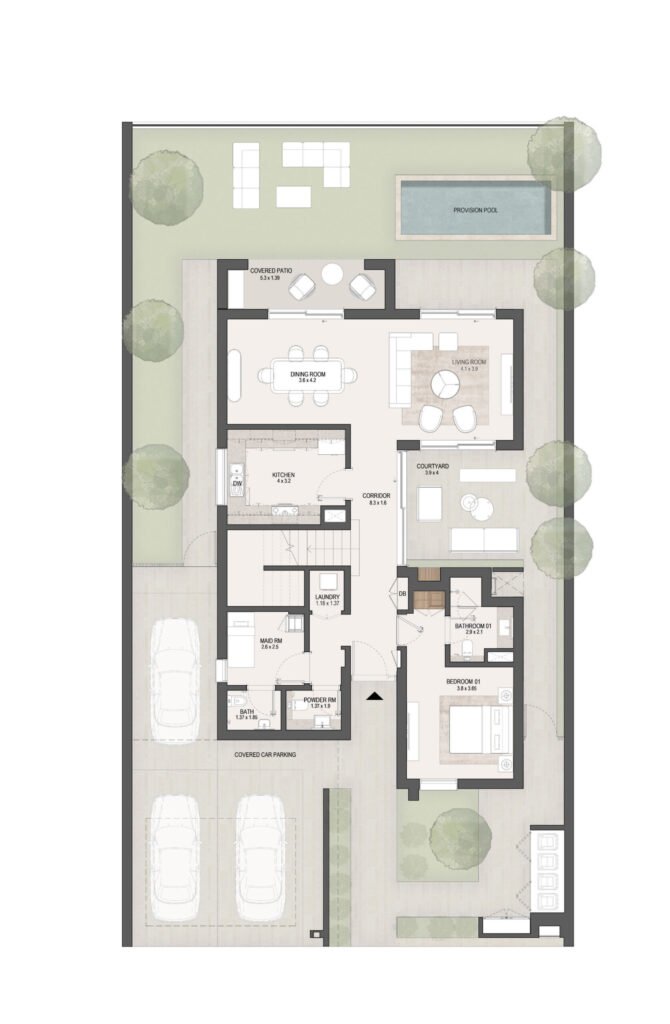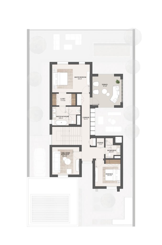 The layouts are carefully designed to maximize space efficiency, natural light and ventilation, ensuring comfortable family living in Masdar City, Abu Dhabi.
