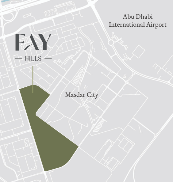 Fay Hills is situated in Masdar City, Abu Dhabi, one of the region’s leading sustainable urban developments. The community offers convenient access to major highways, Abu Dhabi International Airport, Yas Island, and key business districts.